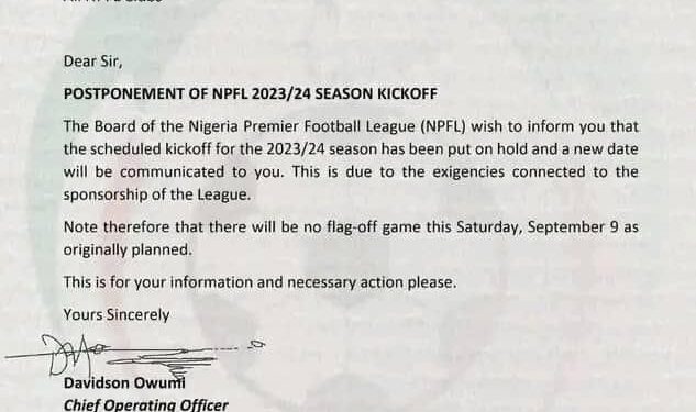 The Nigeria Professional Football League has been postponed with just three days to Kickoff.