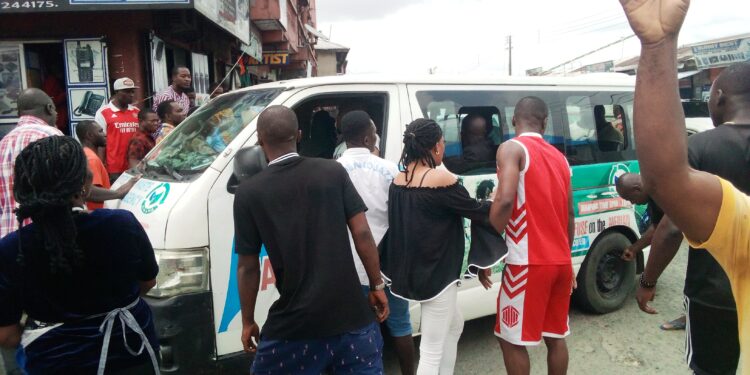 The incident which lasted for minutes caused serious hold up in the area as the dealers forcefully released the suspect – who denied dumping refuse in the drainage.