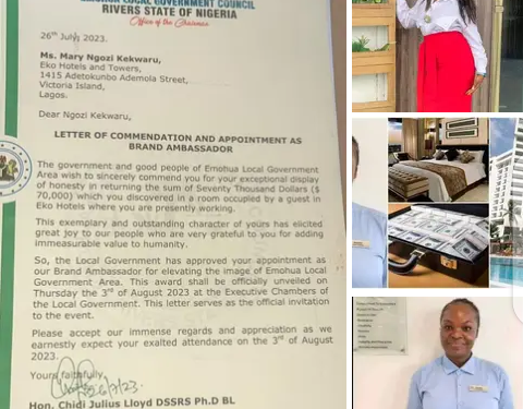 The chairman of Emohua local government area, Hon. Chidi Lloyd, DSSRS has approved the appointment of Ms Mary Ngozi Kekwaru, an indigene of Rundele community in Emohua LGA of Rivers State as an Ambassador of the Local Government Area for her exceptional display of honesty and sincerity in returning Seventy Thousand Dollars ( $70,000) misplaced by a guest in her place of work at Eko Hotels in far away Lagos State.
