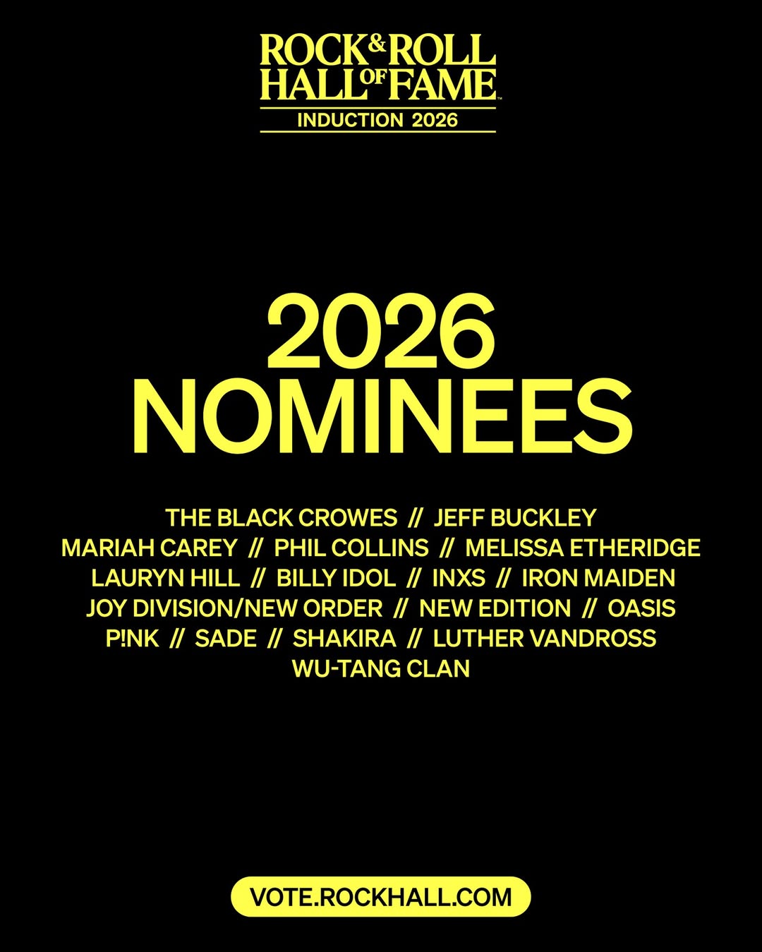 The 2026 inductees will be revealed in April, along with inductees entering the hall under three special committee categories: musical influence, musical excellence and the Ahmet Ertegun Non-Performer Award.